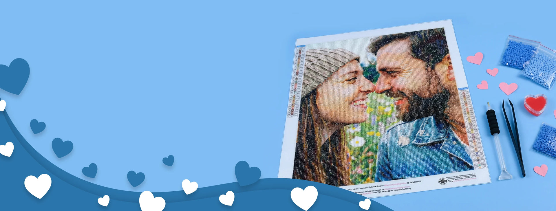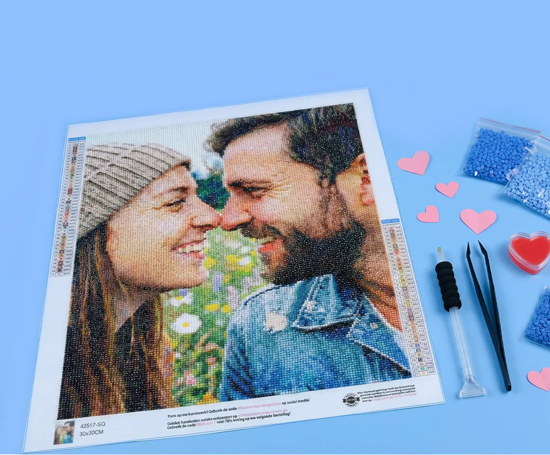 De Diamond Painting Valentijns Deals zijn dé perfecte manier om de liefde te vieren, en al helemaal met onze speciale Valentijnskorting. Met de eerste knop kom je bij onze bestverkochte cadeaus. Klik op de tweede knop om direct naar de pagina voor een diamond painting met je eigen foto te gaan. Dit is ons meest populaire product voor een romantische avond dit jaar!